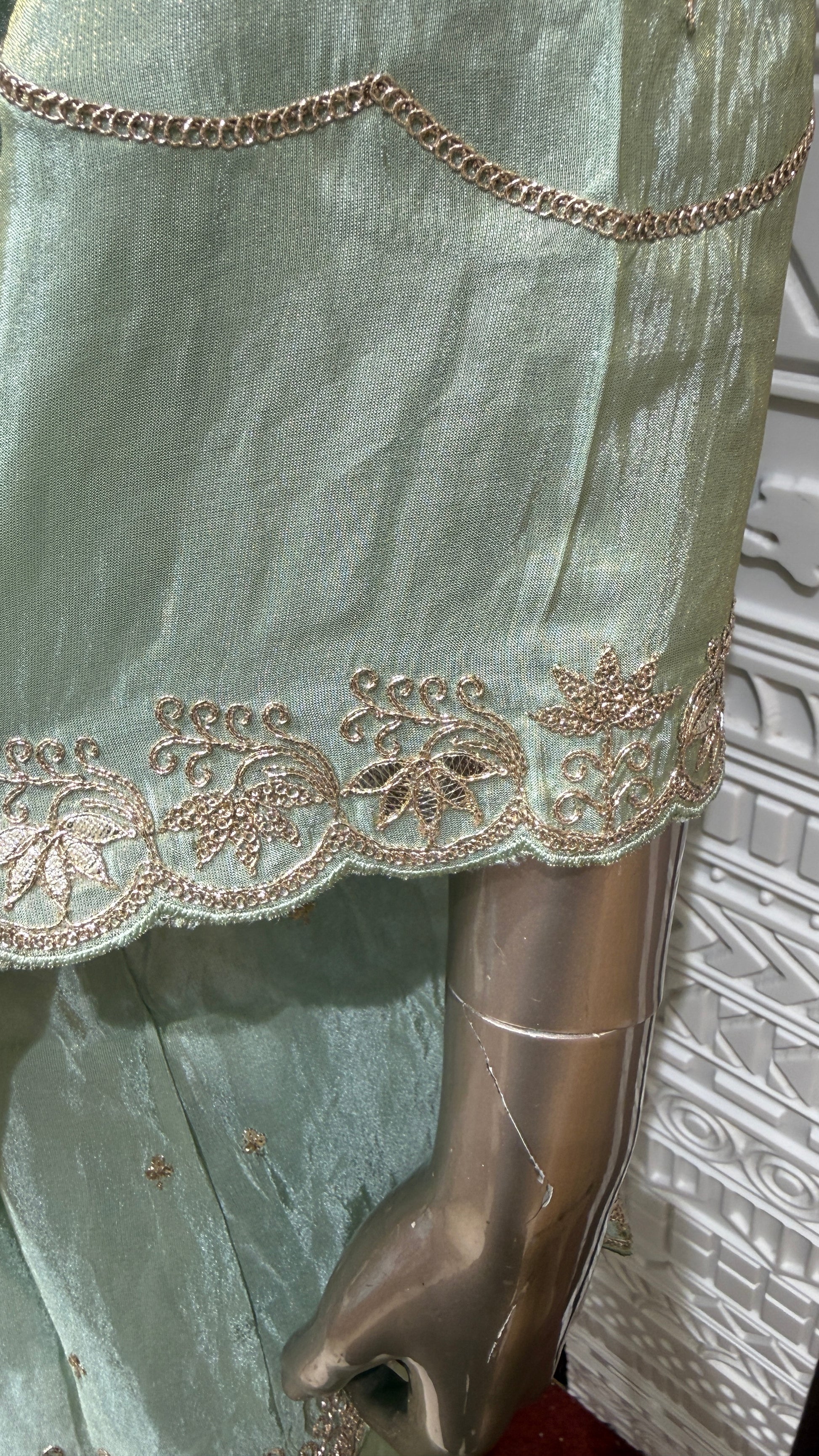 Mint Green Embroidered Soft Tissue Silk Palazzo Set โ Sheetal Collection