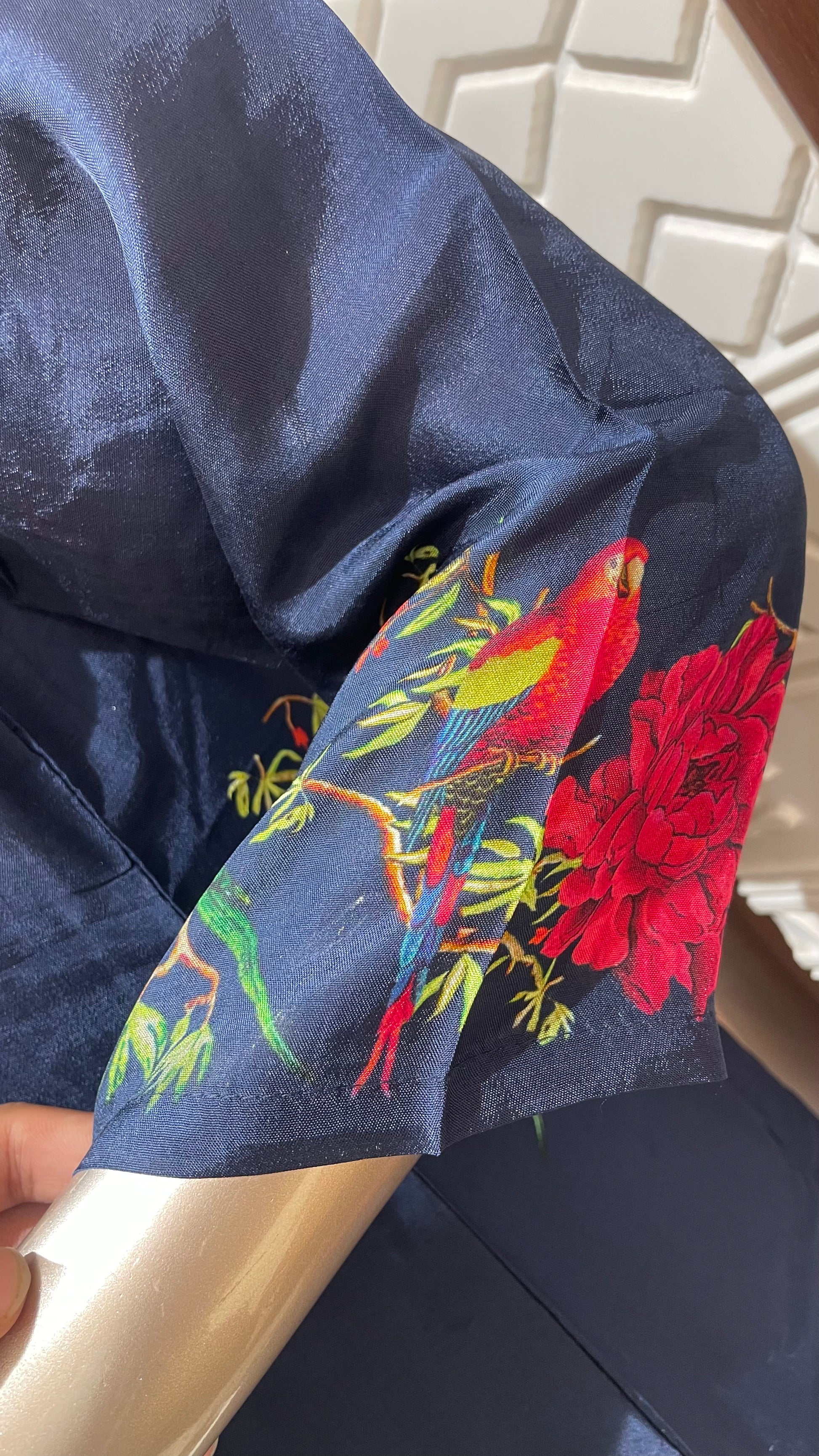 Navy Blue Floral Printed Silk 3 Piece Suit Set β Sheetal Collection