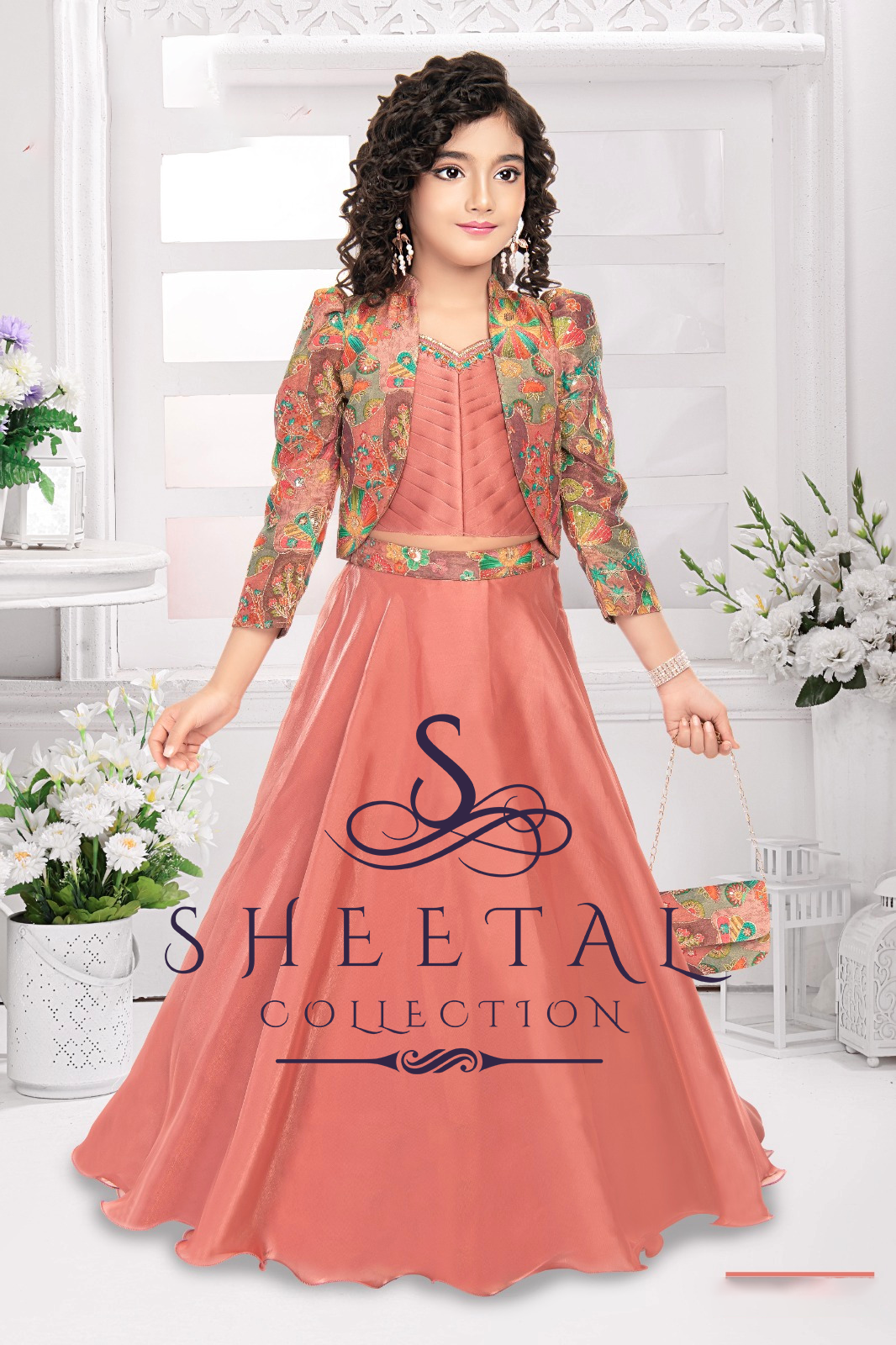 Peach Gown & Floral Jacket Set – Trisha Girl’s Ethnic Studio
